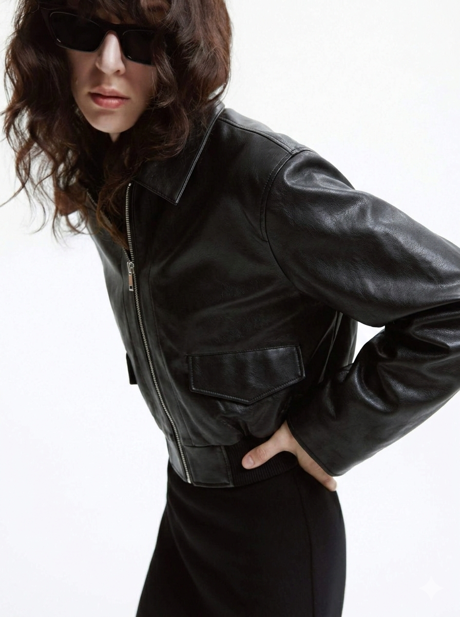Arish Leather Jacket Athletic Mid-Weight Short Jacket Black