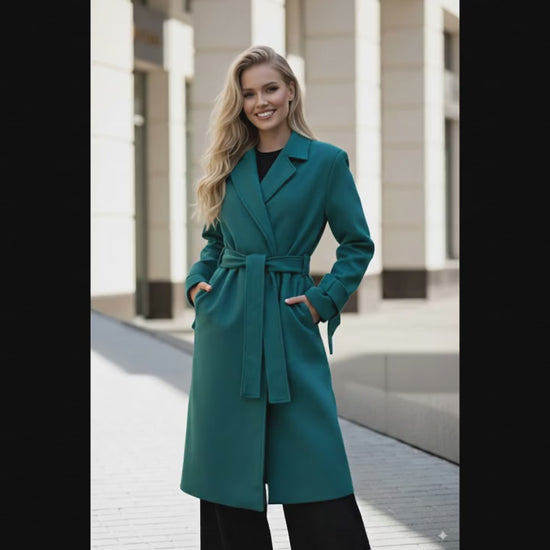 Step into timeless elegance with the Faiyum Coat in Dark Teal — a refined outerwear piece designed to keep you warm while making a bold style statement.